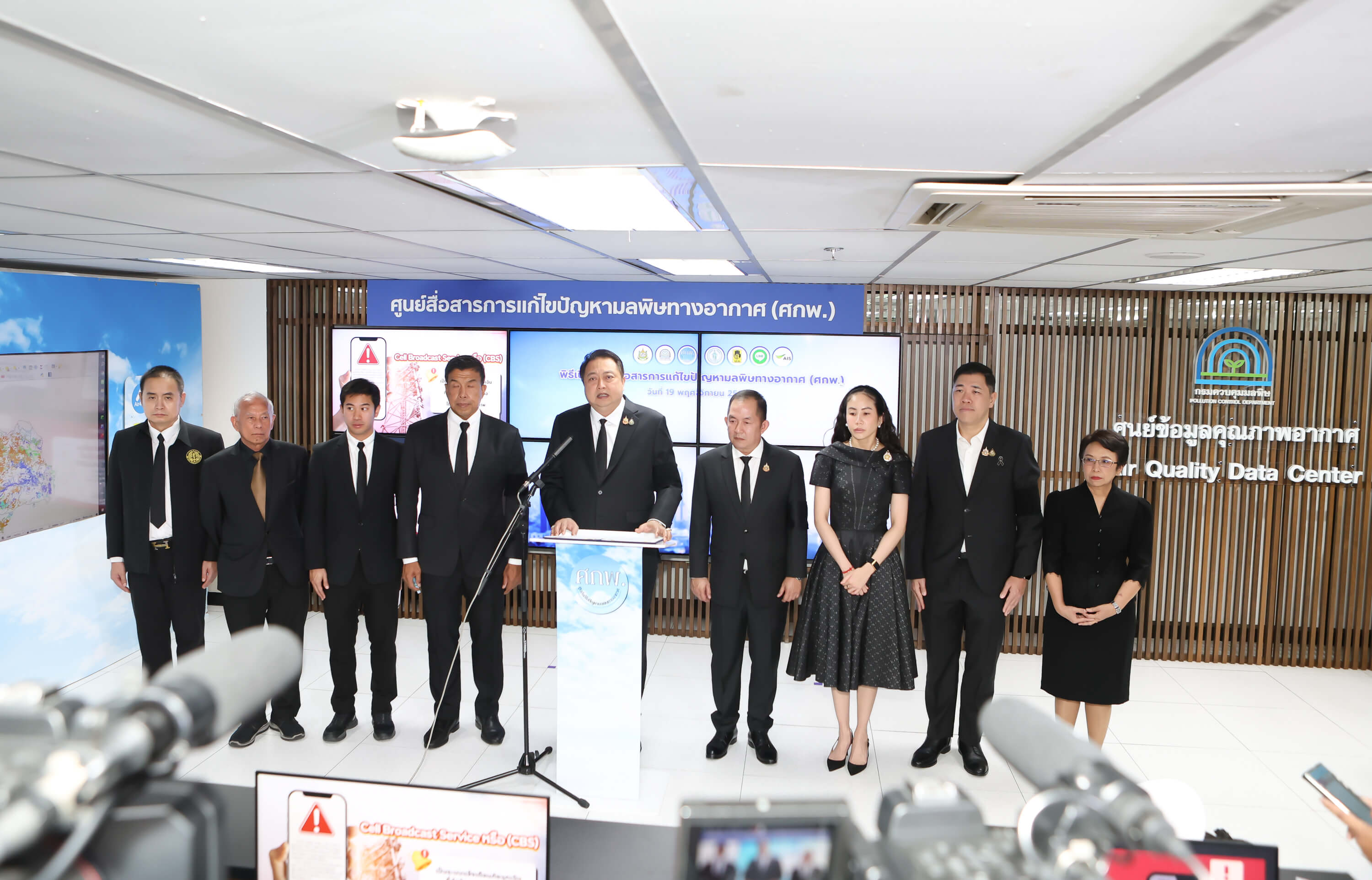 นายสุชาติ ชมกลิ่น รองนายกรัฐมนตรี และรัฐมนตรีว่าการกระทรวงทรัพยากรธรรมชาติและสิ่งแวดล้อม ร่วมกับ นายชัชชาติ สิทธิพันธุ์ ผู้ว่าราชการกรุงเทพมหานคร ผู้แทนกรมป้องกันสาธารณภัย (ปภ.) บริษัท ไลน์ คอมพานี (ประเทศไทย) จำกัด และบริษัท แอดวานซ์ อินโฟร์ เซอร์วิส จำกัด (มหาชน) ร่วมเปิดศูนย์สื่อสารการแก้ไขปัญหามลพิษทางอากาศ (ศกพ.) เพื่อแจ้งเตือนสถานการณ์ฝุ่น PM2.5 ผ่านระบบ Cell Broadcast ระบบ Line Alert และช่องทาง SMS ให้ประชาชนเฝ้าระวังสุขภาพครอบคลุมทุกพื้นที่