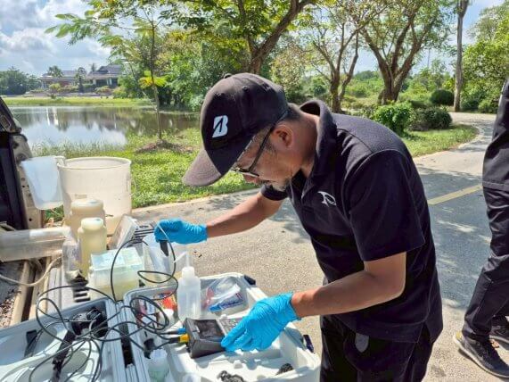 ในการติดตามตรวจสอบคุณภาพน้ำ เมื่อวันที่ 1 ธันวาคม 2568 เจ้าหน้าที่สำนักงานสิ่งแวดล้อมและควบคุมมลพิษที่ 16 (สคพ.16) ได้ติดตามตรวจสอบคุณภาพน้ำภาคสนามและเก็บตัวอย่างน้ำ ณ ทะเลสาบสงขลา คลองอู่ตะเภา คลองแห และคลองในพื้นทีอำเภอระโนด จำนวน 11 จุด พบว่า ออกซิเจนละลายน้ำ (DO) มีค่า 0.0 – 4.2 มิลลิกรัม/ลิตร ซึ่งบ่งชี้ถึงคุณภาพน้ำไม่ดี ถึงพอใช้ อาจเกิดจากการปนเปื้อนสารอินทรีย์หรือน้ำท่วมขังทำให้ออกซิเจนในน้ำลดลง ความขุ่น (Turbidity) มีค่า 0.61-53.7 NTU มีความผันผวนในแต่ละพื้นที่ ซึ่งคาดว่าเป็นผลมาจากน้ำท่วมที่พัดพาตะกอนลงสู่แหล่งน้ำ ส่วนความเป็นกรด-ด่าง (pH) ค่าการนำไฟฟ้า (Conductivity) และความเค็ม (Salinity)อยู่เกณฑ์ปกติ และ สคพ.16 ได้เก็บตัวอย่างคุณภาพน้ำส่งห้องปฏิบัติการฯ วิเคราะห์ความสกปรกในรูปสารอินทรีย์ แบคทีเรียกลุ่มโคลิฟอร์มทั้งหมด แบคทีเรียกลุ่มฟีคอลโคลิฟอร์ม และแอมโมเนียในหน่วยไนโตรเจน เพื่อประเมินคุณภาพน้ำจากสถานการณ์อุทกภัย และเพื่อประกอบการวางแผนจัดการคุณภาพน้ำในพื้นที่ต่อไป