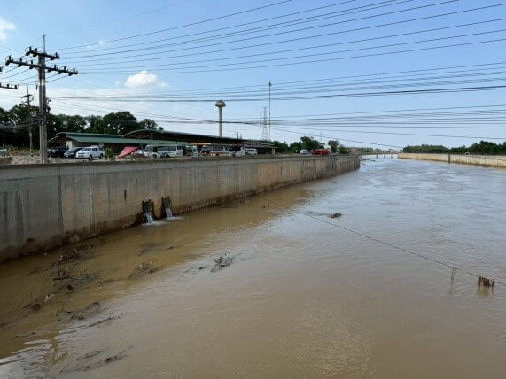 คุณภาพน้ำไม่เป็นไปตามมาตรฐานแหล่งน้ำผิวดินประเภทที่ 3 ในบางจุด โดยปัญหาหลัก ได้แก่ ออกซิเจนละลายน้ำต่ำ และความขุ่นสูง แอมโมเนียสูง และฟอสฟอรัสทั้งหมดสูง สอดคล้องกับปริมาณของเสีย น้ำเสียและขยะจำนวนมากถูกน้ำท่วมพัดพาลงสู่แหล่งน้ำ อย่างไรก็ตาม ไม่พบค่าของโลหะหนัก แอมโมเนีย และฟอสฟอรัสทั้งหมดที่เกินมาตรฐาน ขณะนี้ อยู่ระหว่างรอผลวิเคราะห์เพิ่มเติมจากห้องปฏิบัติการ ได้แก่ น้ำมันและไขมัน สารอินทรีย์ แบคทีเรียโคลิฟอร์ม ไนโตรเจนทั้งหมด และแบคทีเรียฟีคอลโคลิฟอร์ม